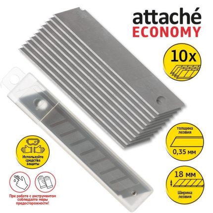 Запасные лезвия Attache для канцелярского ножа изготовлены из стали, ширина — 9 мм. Имеют метки для точного обламывания, нанесенные с