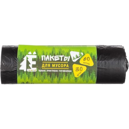 Мешки для мусора Элементари 60 л черные (ПНД). Подходят для легкого мусора. Данные пакеты нашли широкое применение в домашнем использовании,