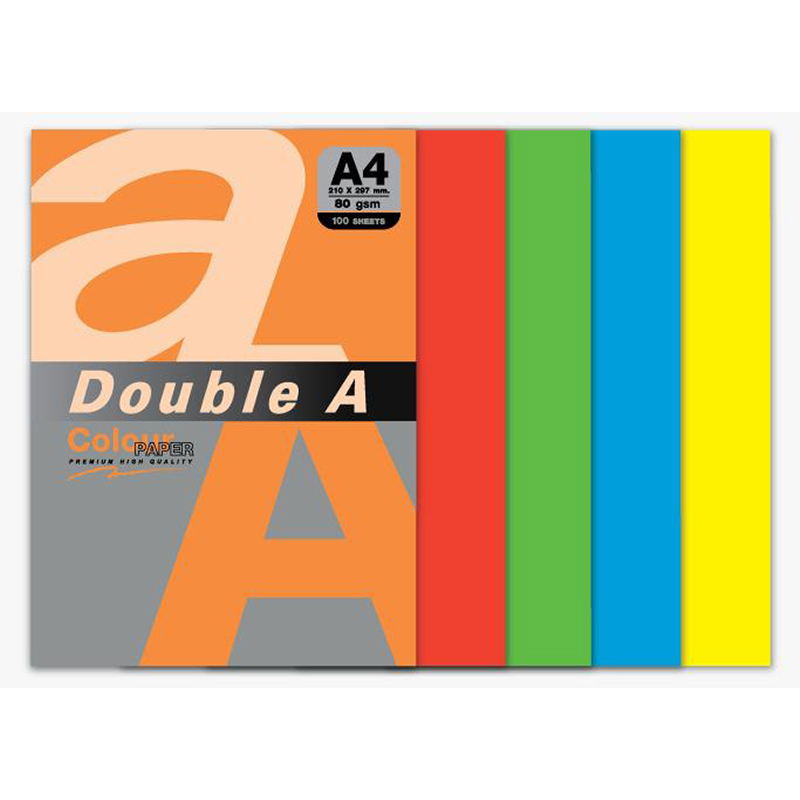 Бумага цветная А4 DOUBLE Радуга 5 цв неон 80 г/м 100 лист