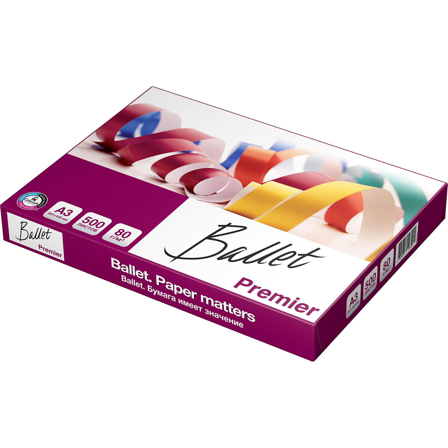 Ballet Premier марки A— идеальная бумага для печати престижных и важных документов. Бумага формата А3 соответствует ГОСТ Р 57641-2017 и сертифицирована согласно стандартам ISO-9001. В процессе производства используется сырье без элементарного хлора, что позволяет признать бумагу экологичной и максимально безопасной для сотрудников. Ballet Premier отличается белизной, что значительно повышает контраст между запечатанными и пробельными участками и улучшает визуальное восприятие текста. Превосходная жесткость, присущая бумаге Ballet Premier, обеспечивает безукоризненные эксплуатационные качества этой бумаги на любом офисном оборудовании, как цветном, так и черно-белом, лазерном или струйном. Высокая гладкость бумаги Ballet Premier позволяет достичь лучшего контакта между поверхностью бумаги и печатным механизмом, что означает более качественный отпечаток на струйном и цветном лазерном принтерах. В результате получаются печатные документы высшего качества.
