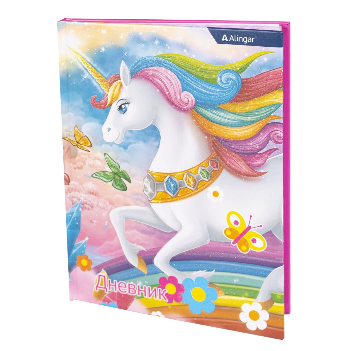 Дневник школьный Alingar 1-11 кл. 48л., 7БЦ, ламинированный картон, поролон, глиттер, “Little unicorns”