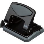 Дырокол Attache — это важный и необходимый предмет для комфортной работы в офисе и дома. Дырокол позволяет аккуратно перфорировать документы, чтобы подшить их в папку с двумя и четырьмя кольцами или в скоросшиватель. Современный дизайн и универсальный черный цет металлического корпуса отлично впишутся в любой офисный интерьер. Специальная резиновая вставка на корпусе не позволяет рукам скользить во время работы. Одним нажатием возможно пробить отверстия в документе толщиной до 25 листов плотностью 80 г/кв.м. Дырокол делает два отверстия диаметром 6 мм, расстояние между отверстиями — 80 мм. Пробойники дырокола изготовлены из высококачественного металла, что позволит им прослужить дыроколу долго и без сложностей пробивать листы бумаги. Удобный контейнер для конфетти легко открывается и закрывается, исключая его рассыпание. Наличие линейки с делениями позволяет зафиксировать бумагу на нужном расстоянии и пробить отвестия в бумаге в соответствии с ее размером. Удобно работать с форматами A3, A4, A5, A6, B4, B5, B