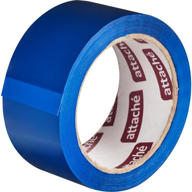 Клейкая лента упаковочная Attache толщиной 45 мкм, синяя. Отличается высокой адгезией клея (слипанием с поверхностью), стойкостью к разрыву. Ширина ленты — 48 мм, длина намотки — 66 м. Широкая клейкая лента предназначена для упаковки средневесовых коробок с шероховатым картоном, не теряет свойств на открытом воздухе при температуре от 10 до 30 градусов Цельсия.