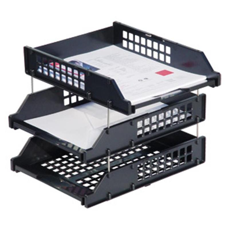 Лоток горизонтальный для бумаг Стамм Strong пластиковый черный решетчатый