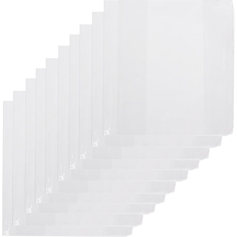Обложки для учебников универсальные, 10 штук в упаковке размером (ВxШ) — 232×450 мм. Изготовлены из ПВХ плотностью 110 мкм. Второй клапан не фиксирован, благодаря чему обложку можно использовать для учебников разной ширины. Набор обложек предохраняет учебники от внешнего воздействия (механических повреждений, пыли и грязи). Обложка сохраняет эластичность и прочность при температуре от 30 до 15 градусов Цельсия. Набор состоит из 10 одинаковых обложек, которые упакованы в пакет с липким слоем.