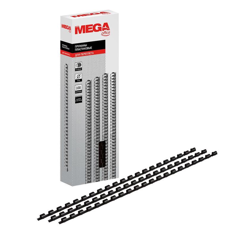 Пружины для переплета пластиковые Promega office 6мм черные 100шт/уп. (для сшивания 20 листов)