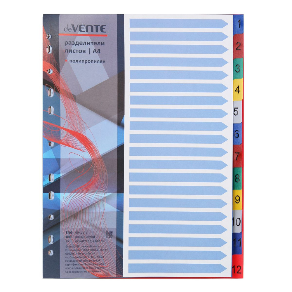 Разделитель листов deVente А4 цифровой 12 цветов