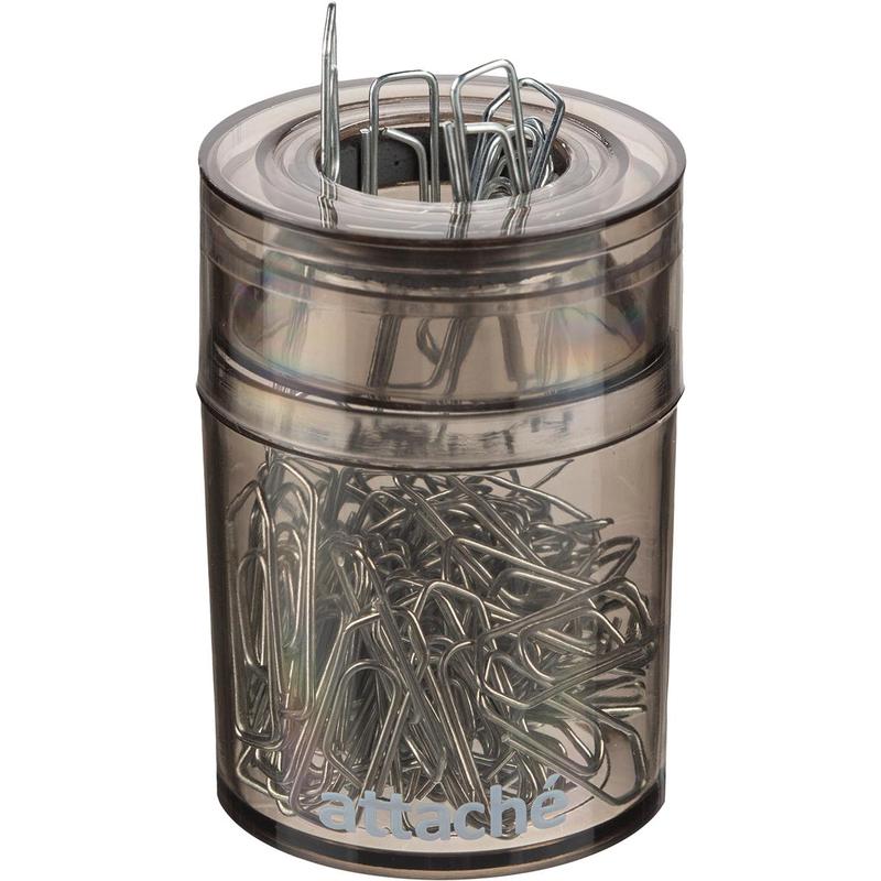 Скрепочница Attache используется для удобного хранения скрепок на рабочем столе. Она поможет поддерживать порядок на Вашем месте, при этом скрепки всегда будут под рукой в нужный момент. Круглый корпус выполнен из полупрозрачного пластика черного цвета. Размер скрепочницы (ШхВ): 42×60 мм. Диаметр отверстия в верхней части — 24 мм. Загрузка скрепок производится сверху, сильный магнит не позволяет им произвольно высыпаться. Скрепки в комплект не входят.