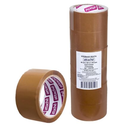 Клейкая лента упаковочная Attache толщиной 40 мкм, коричневая. Отличается высокой адгезией клея (слипанием с поверхностью), стойкостью к разрыву. Ширина ленты