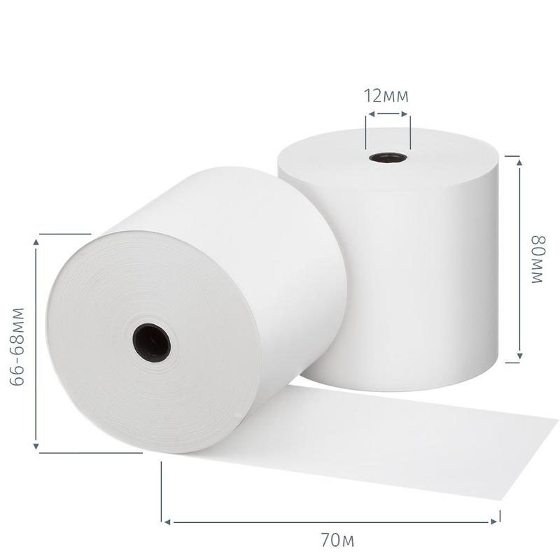 Чековая лента изготовлена из термобумаги. Бумажное полотно с наружным термослоем имеет ширину 80 мм и общую длину 70 метров. Диаметр намотки – 66-68, диаметр втулки – 12 мм. Поставляются в термоусадочной пленке и гофрокоробах. Ролики для термопечати используются в кассовых аппаратах и калькуляторах со встроенным или внешним термопринтером.