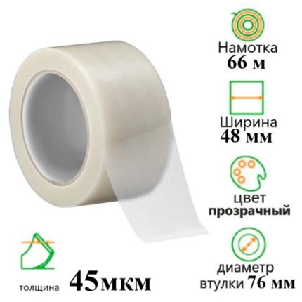 Клейкая лента упаковочная Kuvert 48 мм х 66 м прозрачная